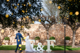 - Algo que nunca falta en una boda son las fotos ¡que para algo estáis radiantes ese día! En La Masía contamos con espacios estratégicos para que el marco sea espectacular. El amor también está presente en vuestras fotos hechas, por ejemplo, en el mirador y en los jardines. Pero si echáis en falta un toque lovely, los photocalls temáticos están más que permitidos, además de los neones, las guirnaldas y las letras con bombillas. ¡A todo os decimos sí!